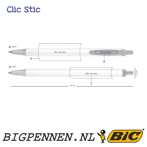 BIC® clic stic balpen met een bedrukking uw logo, deze BIC® pen is een goedkope fijne balpen, maar wel van een goede kwaliteit en een goed design met veel schrijfplezier voor jong en oud.
