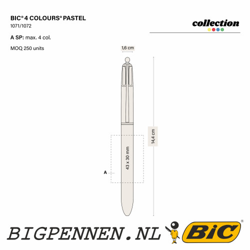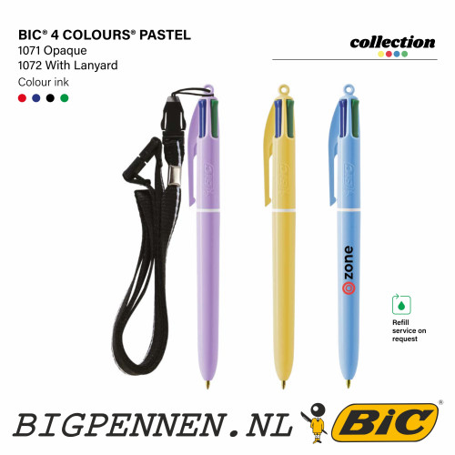 BIC® 4 Colours Pastel balpen bedrukt met uw logo. Kleine afname en snelle levertijden mogelijk.