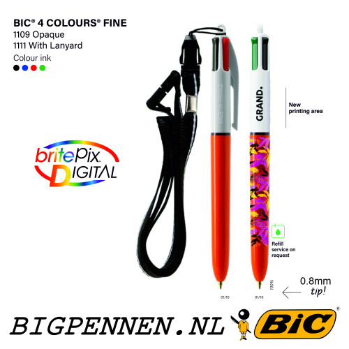 BIC® 4 Colours Fine balpen bedrukt met uw logo, deze BIC® pen is een van goede kwaliteit en een goed design.